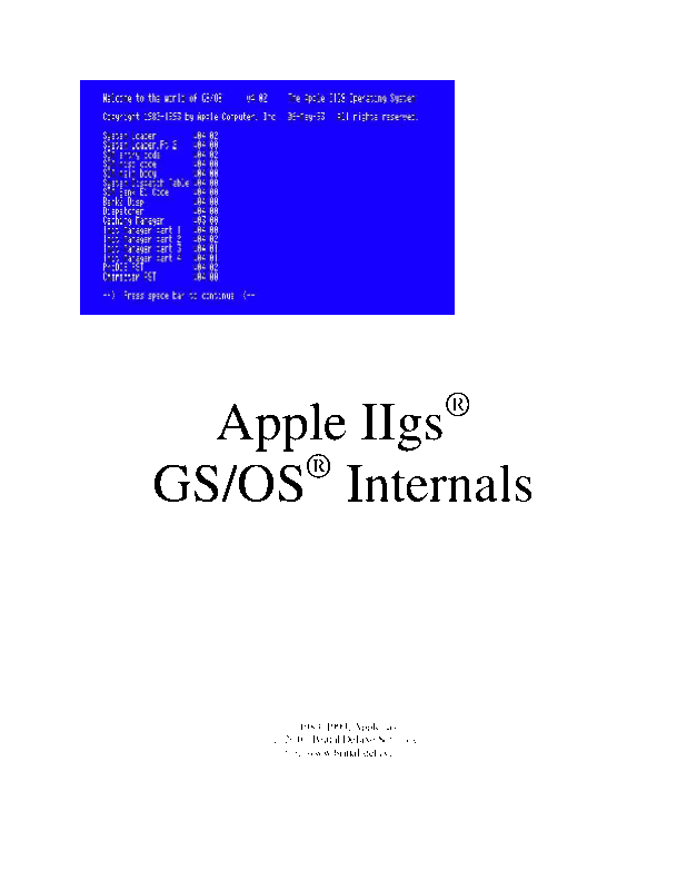 This book is for advanced Apple IIgs programmers and curious people. It is an unofficial publication from Brutal Deluxe Software and all the information given herein are related to the Apple IIgs System 6.0.1 version. This book is the result of a 3-years understanding of the inners of GS/OS which was done in order to build a File System |